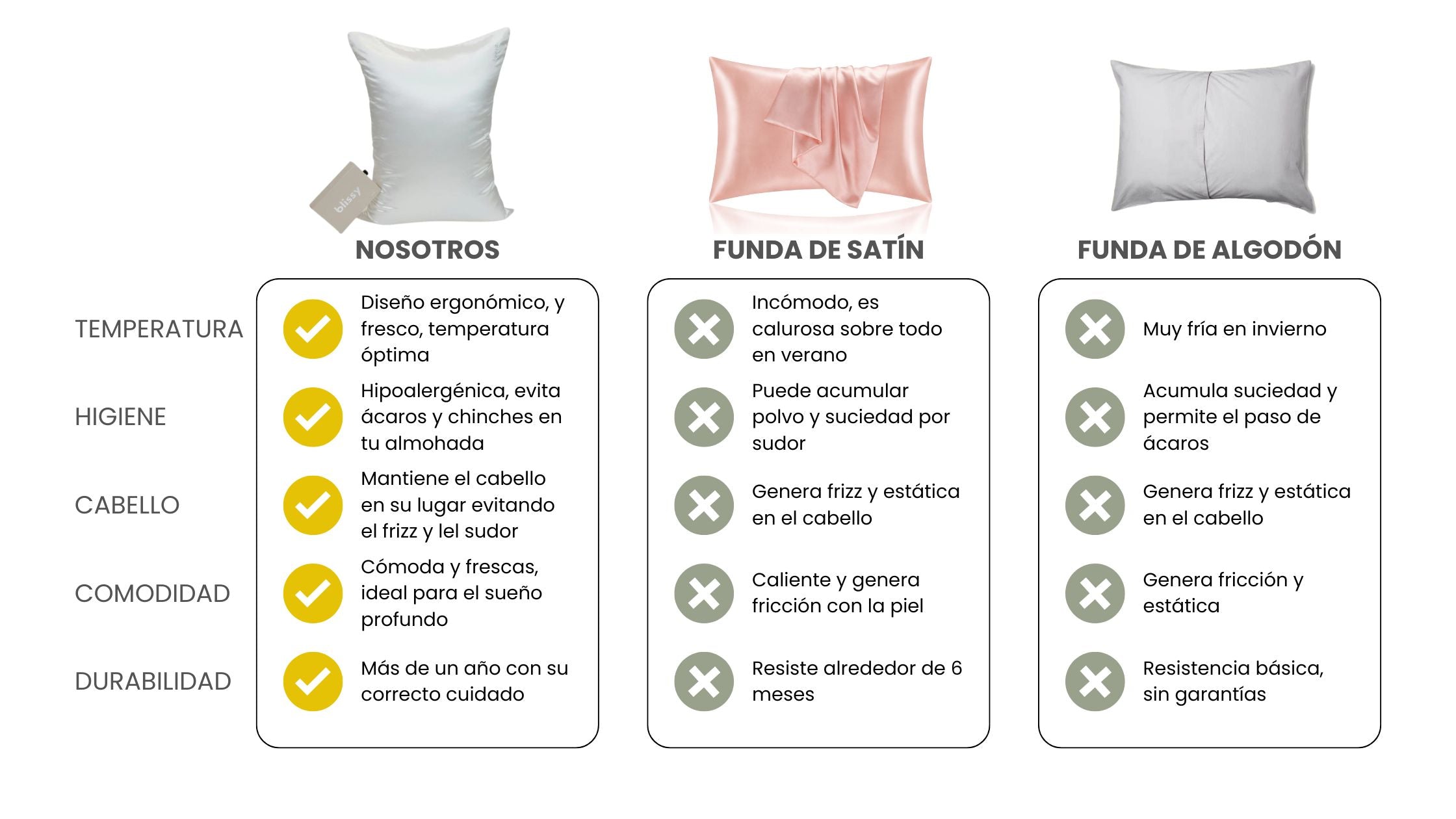 ¡No más CABELLO CON FRIZZ AL DESPERTAR! ¡Di adiós a la sequedad y a los enredos! Disfruta de mañanas y estilo más eficientes. Además, la superficie no absorbente ayuda a mantener los aceites productores naturales de su cabello. Ya sea que tu cabello sea lacio o tchino, tu cabello te agradecerá por bendecirlo con el suave tacto de la seda.
